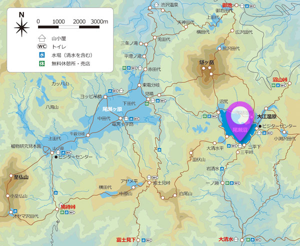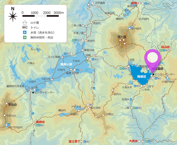 最も近い入山口・沼山峠からならわずか1時間。御池から燧ヶ岳越えで宿泊、大清水から入って翌日に燧ヶ岳・燧ヶ岳山麓・尾瀬ヶ原へも。